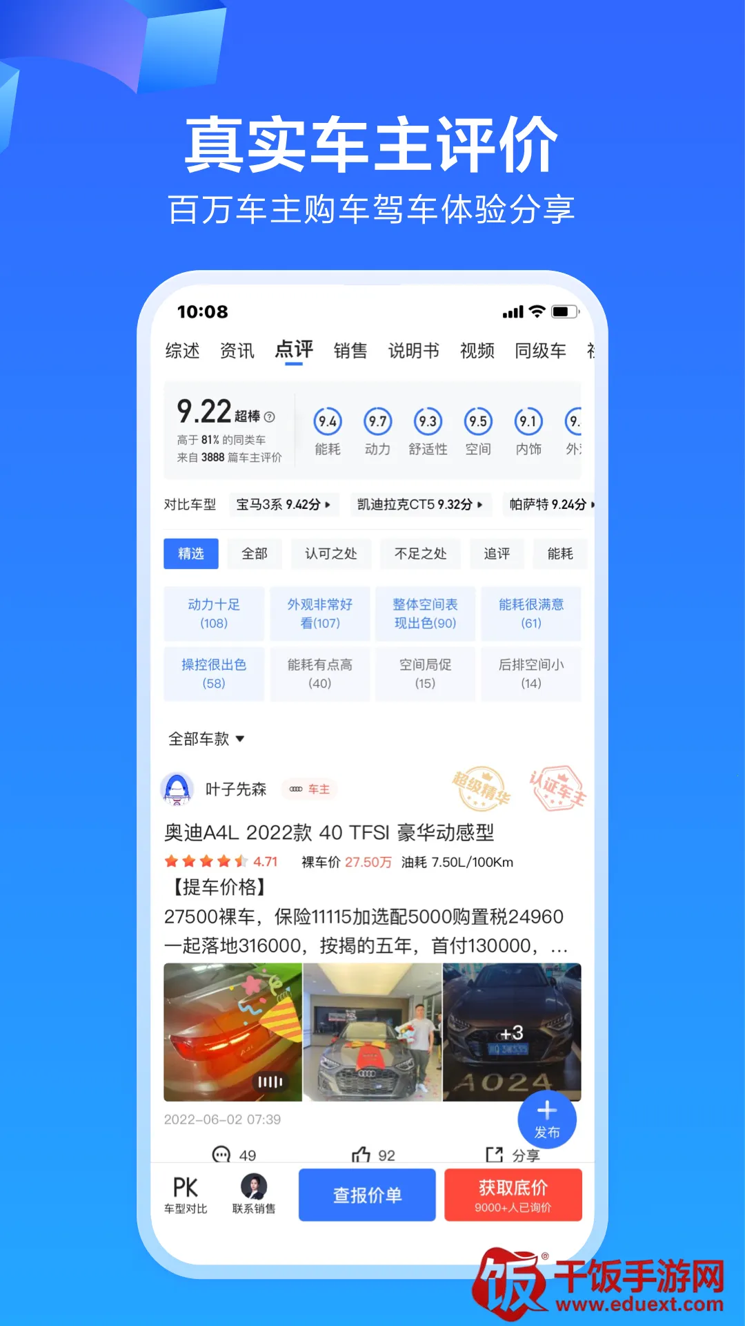 2. 丰富的信息资源:涵盖全国2万经销商实时车款报价,购车优惠、红包补贴清晰可见,还有100万车主真实成交价参考,能助您轻松了解车价行情。
