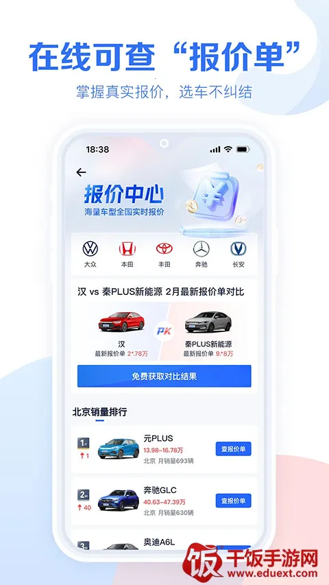 易车汽车报价还是比较准确真实的。它能为咱解决不少购车难题。这里有全国2万经销商的实时车款报价,购车优惠、红包补贴一目了然,还有100万车主的真实成交价做参考。通过它,能快速了解车价,不管是查成交价、报价单,还是询问低价、查分期方案,都轻松搞定。快速选车功能也超棒,有每月销量排行,能按价格、级别、国别、厂商等条件随心筛选中意车型,购车计算还能自定义各项花费,心中有数。深入看车更绝,AR/VR看车、360度全景看车,身临其境,还有精彩视频、海量图库。有了易车汽车报价,足不出户就能掌握各种汽车信息,和经销商沟通底价,为购车提供全面准确的参考,节省时间精力,让买车变得轻松简单。