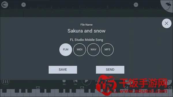 2. 支持多种格式保存,如flm工程文件、midi键盘文件、wav无损音质文件、MP3等,方便不同用途。