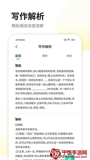 4. 助力写作能力提升:提供满分范文解析、写作技巧讲解及个性化错题推送功能,通过自练 - 自查 - 自纠闭环实现写作能力的精准提升。