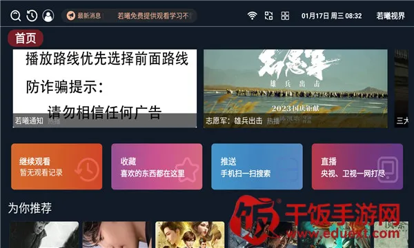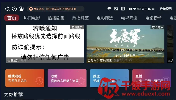 2. **影视资源丰富**:汇聚大量国内外热门影视,众多优质资源可免费体验,随时查看最新和热门影视。