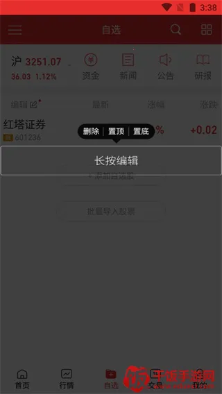 4、开户完成之后,可以先添加一些自选股,当然也可以点击下面的批量导入股票;