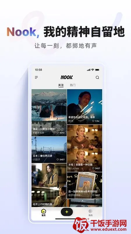 Nook2025官方正版是一款融合视频拍摄、剪辑、发布与社交功能的应用。用户能记录生活瞬间,剪辑分享视频,浏览他人动态,一键关注作者,还有热门推荐等特色,操作简单易上手,不断更新优化。