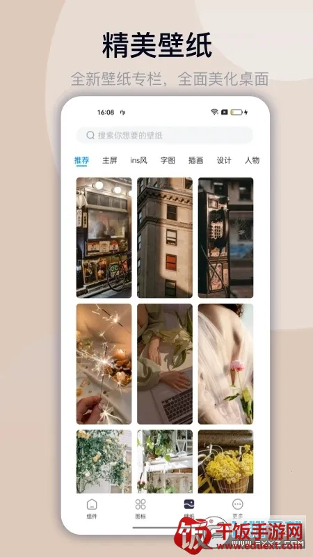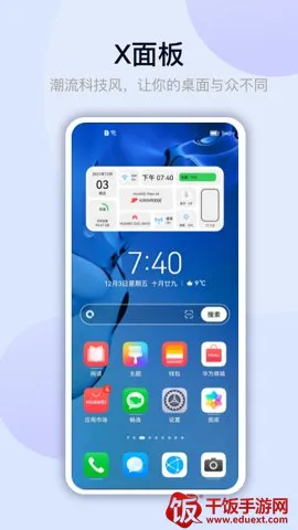 3. 多样特色内容:拥有快捷启动功能,一键直达健康码等;能一键安装整套图标;有精心挑选的海量精美壁纸;热门组件带来前所未有的交互体验和视觉效果,如灵动坞等。