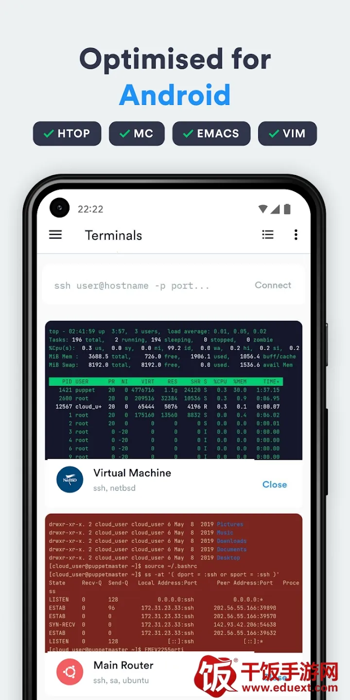 这软件适用于多个主流系统,像iOS、MAC、Android、Linux和Windows等。它支持多次连接同一台主机或连接多台主机,管理RaspberryPi、Linux机器或UNIX服务器群都不在话下。