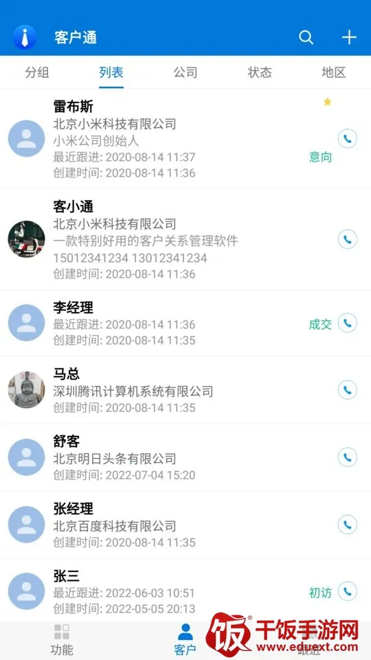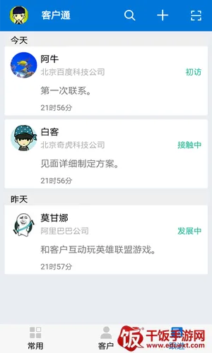 客户通支持记录重要事件和会议,并提醒用户。可让用户简单地管理工作,且所有功能在线免费使用。客户回访及跟进情况会在平台展示,能及时了解不同客户情况。通过扫描客户名片可直接添加客户并了解更多信息,还能将客户信息和通讯录内容分开管理。